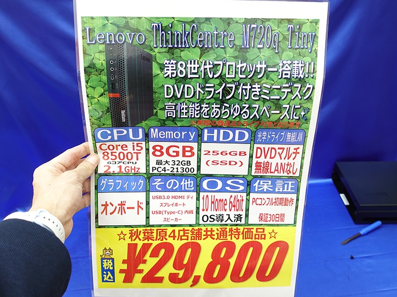Core i5-8500T搭載のミニPC「ThinkCentre M720q Tiny」が29,800円!DVDドライブ付きの中古品セール