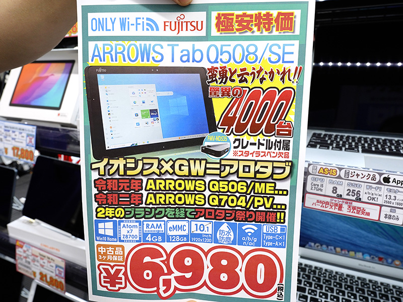 令和三度目のアロタブ祭り!富士通「ARROWS Tab Q508/SE」の激安中古品が驚きの4,000台!