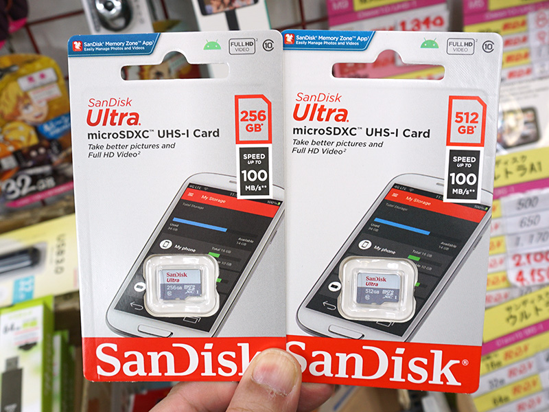 SanDisk UltraシリーズmicroSDカードの256GBと512GBが入荷、価格は2,080円から
