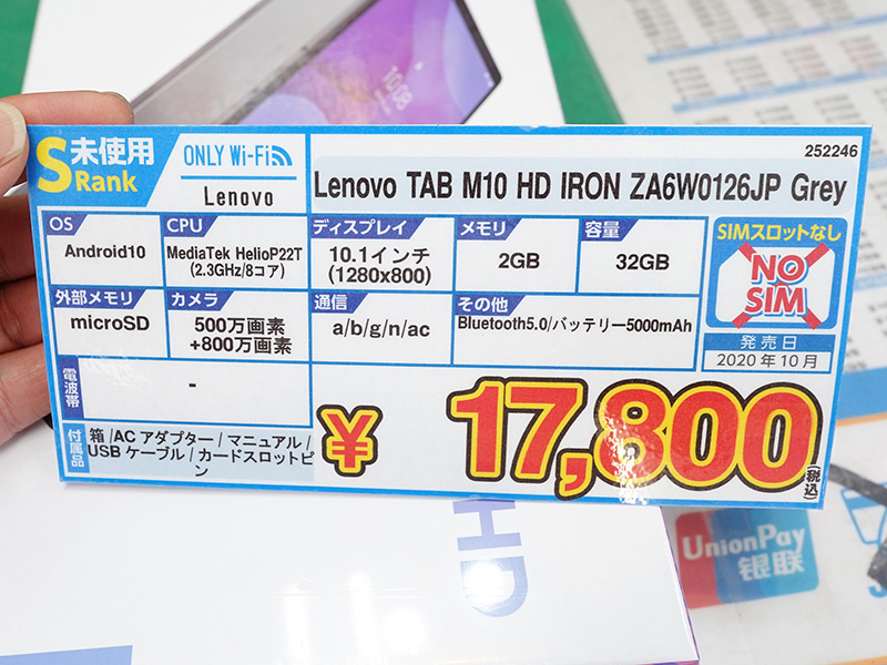 Androidタブレット「Lenovo Tab M10 HD」が大量入荷、未使用品が17,800円でセール
