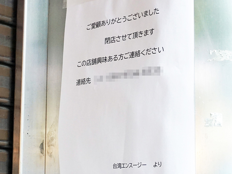 中央通り沿いの鶏唐揚げ店「台湾エンスージー」が約1か月でスピード閉店