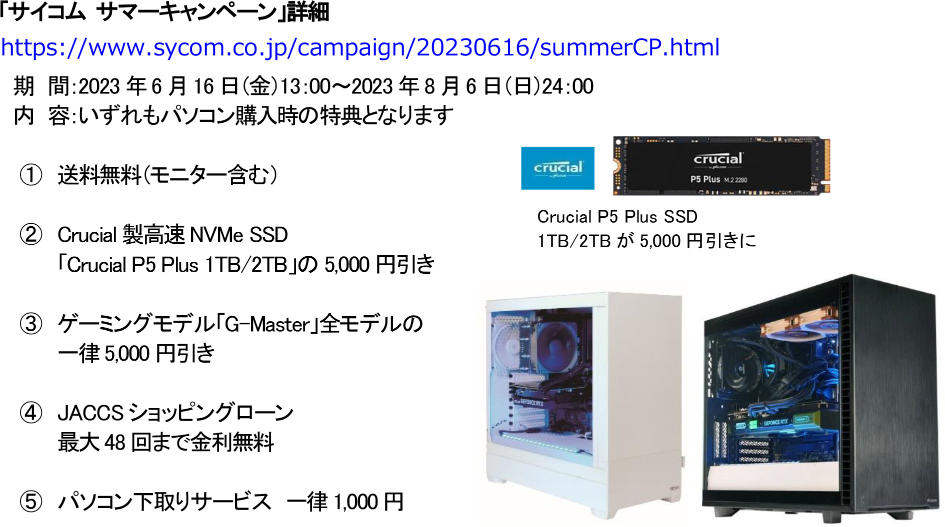 ゲーミングPCが全モデル5千円オフになるサマーキャンペーンをサイコムが実施、SSDも一部割引に