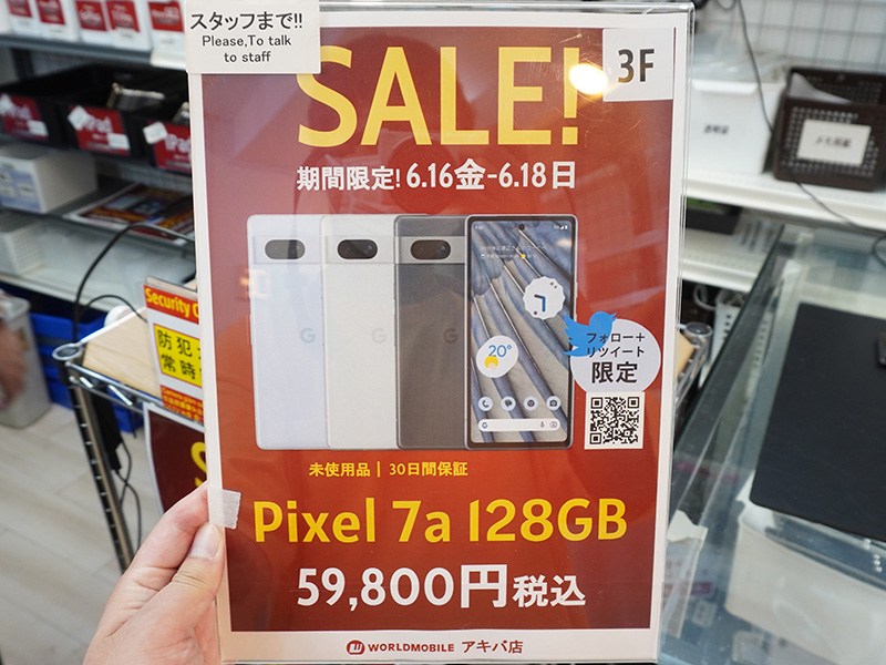 Googleの6.1型スマホ「Pixel 7a」が59,800円、秋葉原で未使用品セール