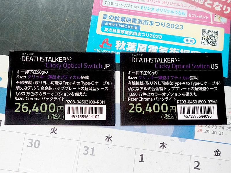 • Razerの薄型キーボード「DeathStalker V2」が発売、リニアキースイッチ採用