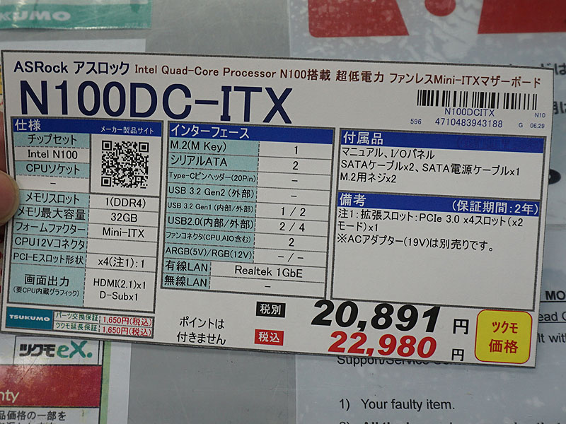 Intel N100搭載のファンレスMini-ITXマザー「N100DC-ITX」がASRockから、価格は22,980円