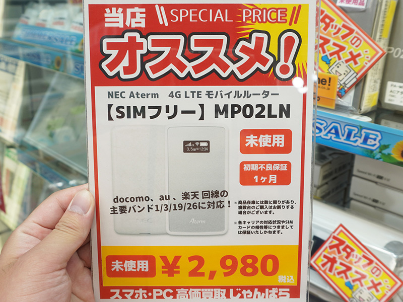 NECの4Gモバイルルーター「Aterm MP02LN」が2,980円!じゃんぱらに未使用品が再入荷