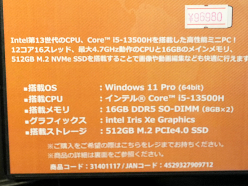 Core i5-13500H搭載の小型PC「MINISFORUM NPB5」が入荷、4画面出力に対応