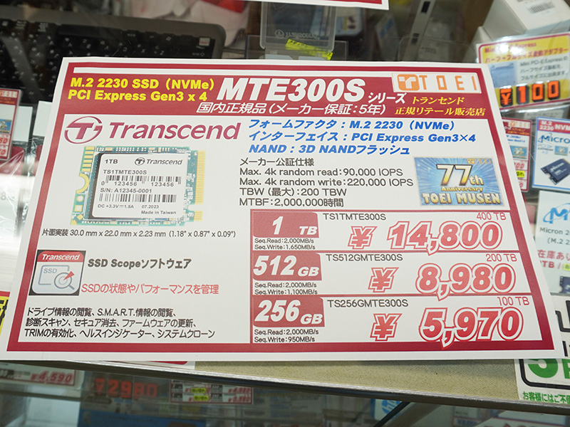 Type 2230規格の小型SSD「MTE300S」がTranscendから、片面実装タイプ