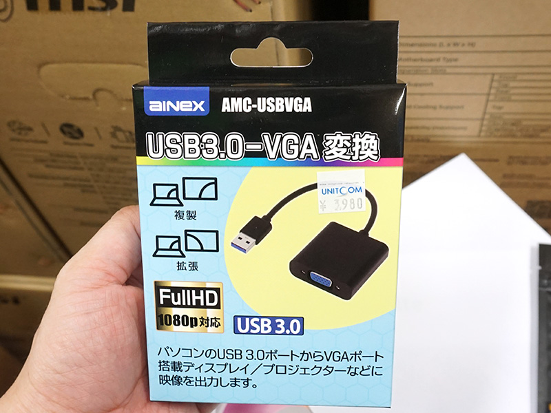 アイネックスのUSB 3.0対応VGAアダプタ、最大4つまで増設可能
