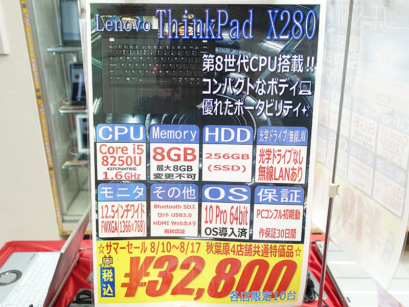 第8世代Core搭載の12.5インチノート「ThinkPad X280」が32,800円!中古PCセール