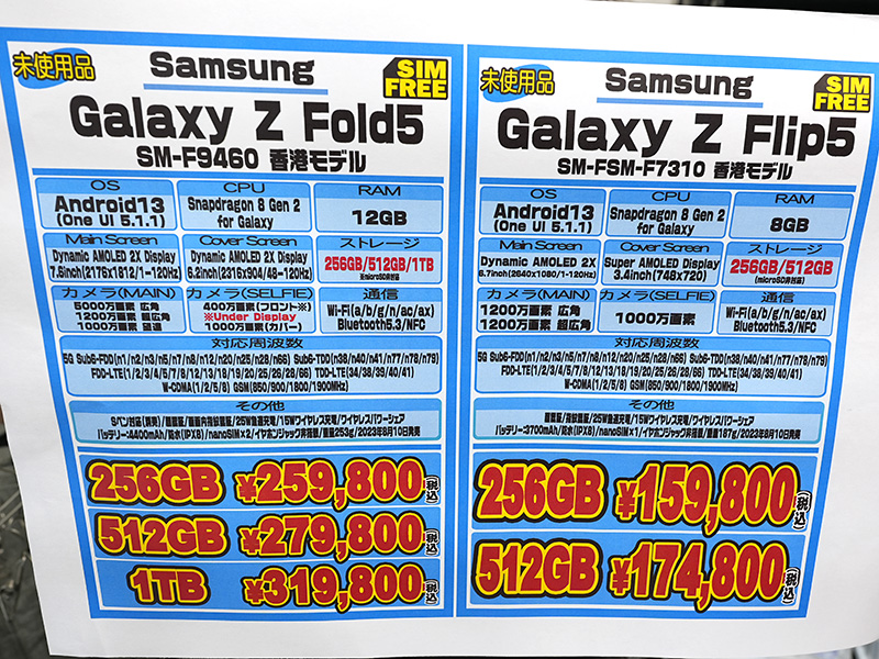 折りたたみ式スマホ「Galaxy Z Flip5/Fold5」香港版が店頭入荷、1TBモデルは30万円以上