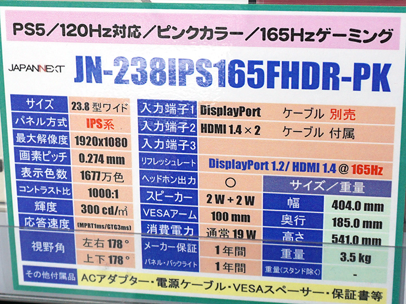 ピンクで統一された23.8インチゲーミングモニターがJAPANNEXTから