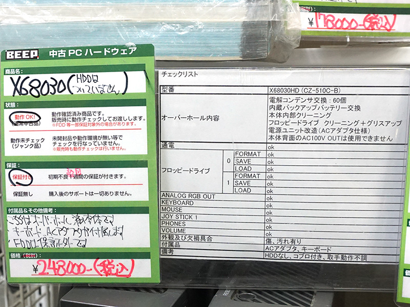 シャープ「X68030」「X68000 XVI」のオーバーホール品がBEEPに入荷
