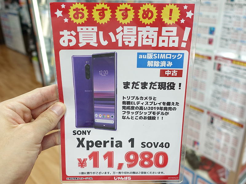 ソニーの名機「Xperia 1」が11,980円、じゃんぱらの中古セール