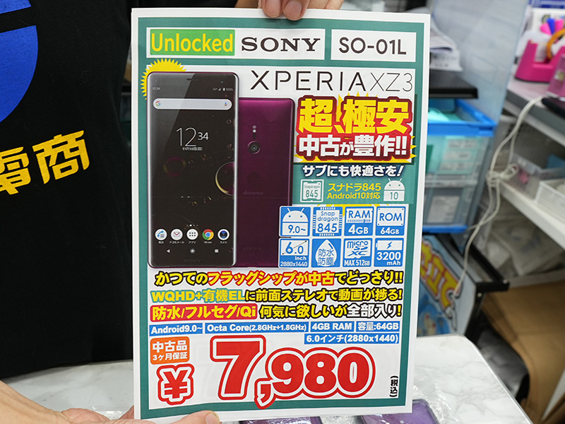 「Xperia XZ3」が7,980円!イオシスで中古品セール