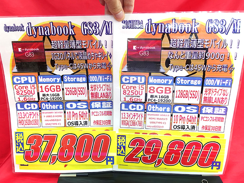 第8世代Core搭載13.3インチノート「dynabook G83/M」が29,800円から!中古PCセール