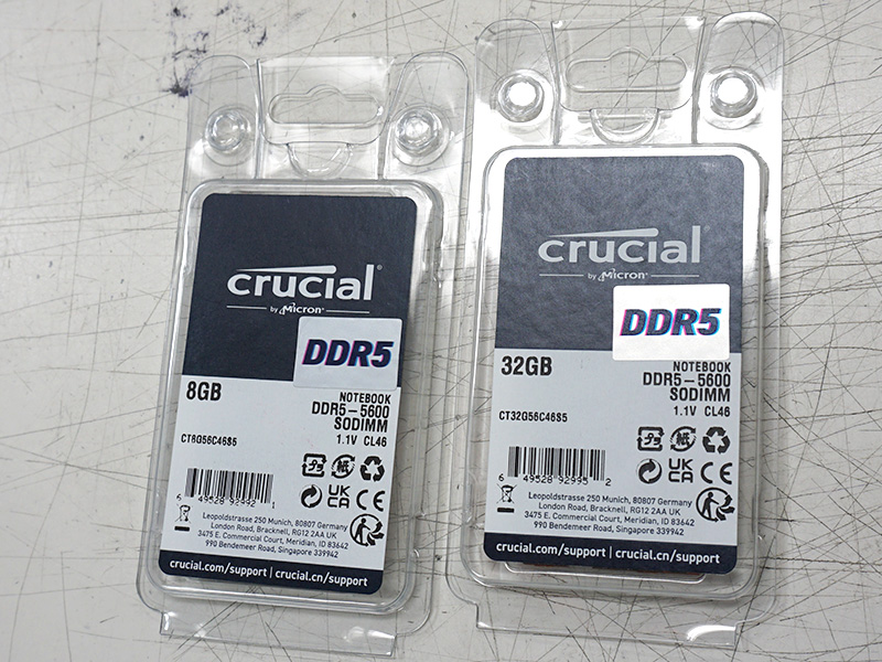CrucialのDDR5-5600 SO-DIMM 8GBと32GBが入荷