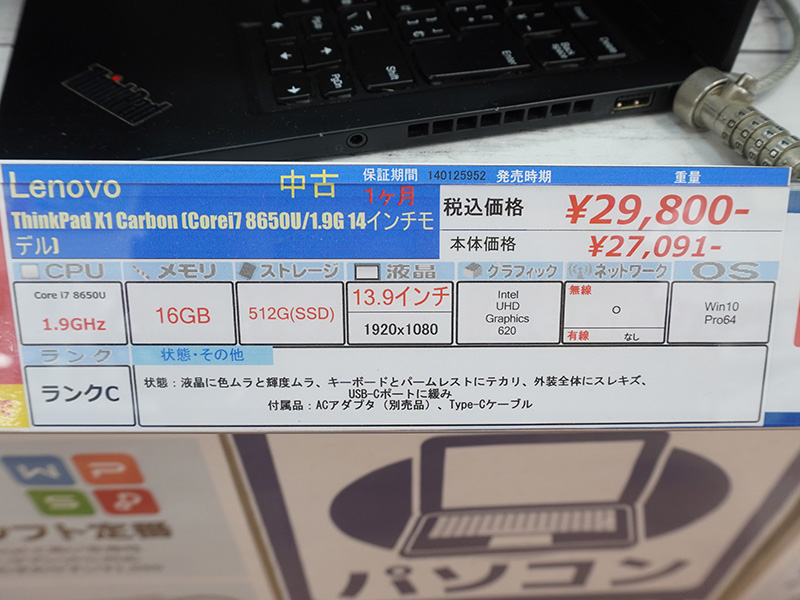 第6世代Core i5搭載レッツノートが4,800円、第8世代Core i7搭載「ThinkPad X1 Carbon」が29,800円など!じゃんぱらの中古PCセール