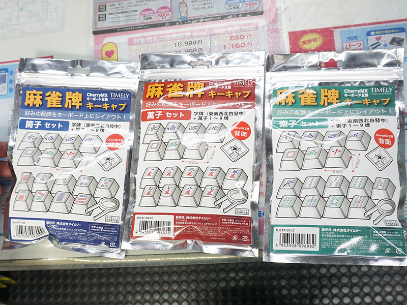 麻雀牌デザインのキーキャップセットが3種類、CherryMXキー互換