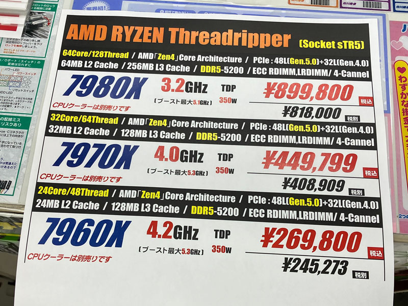 100万円越えの「Ryzen Threadripper PRO 5995WX」が店頭入荷、初回入荷分は売り切れ