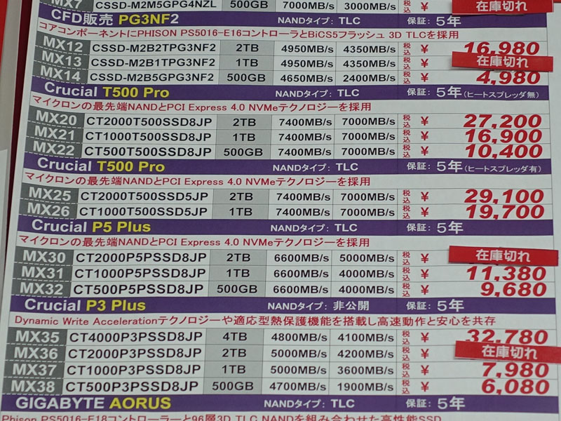 7GB/s超えのNVMe SSD「Crucial T500」が入荷、ヒートシンク付きモデルも