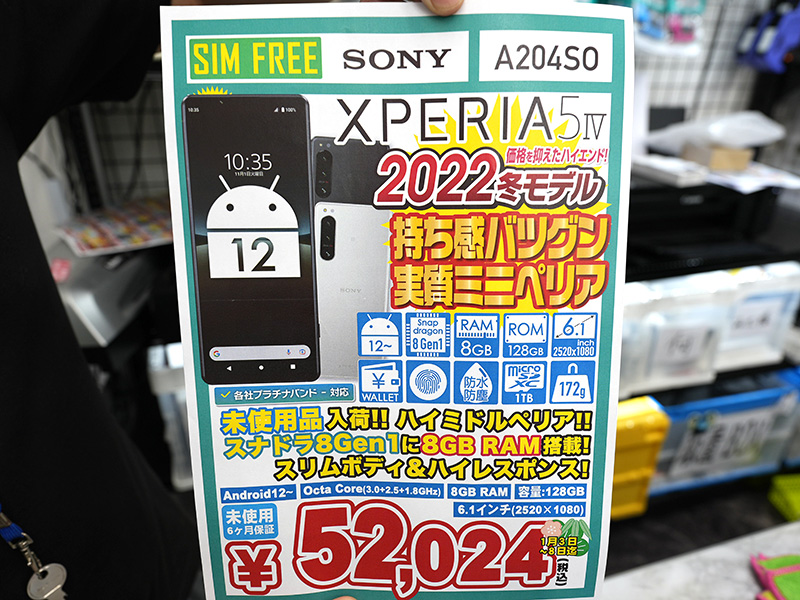 Snapdragon8 Gen1搭載の「Xperia 5 IV」未使用品が52,024円!イオシスで新春初売りセール