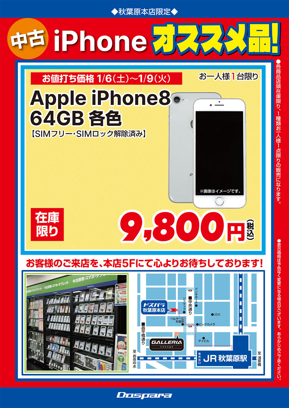 8TBの内蔵HDDが4,980円、iPhone 8 64GBが9,800円!ドスパラ秋葉原本店で期間限定セール