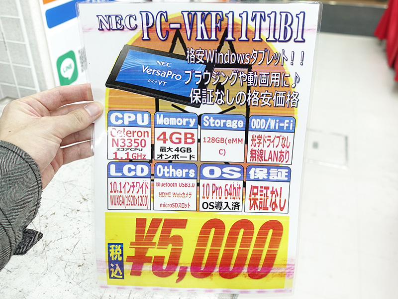 NECの10.1インチWindowsタブレットが5,000円!PCコンフルで訳あり中古品セール