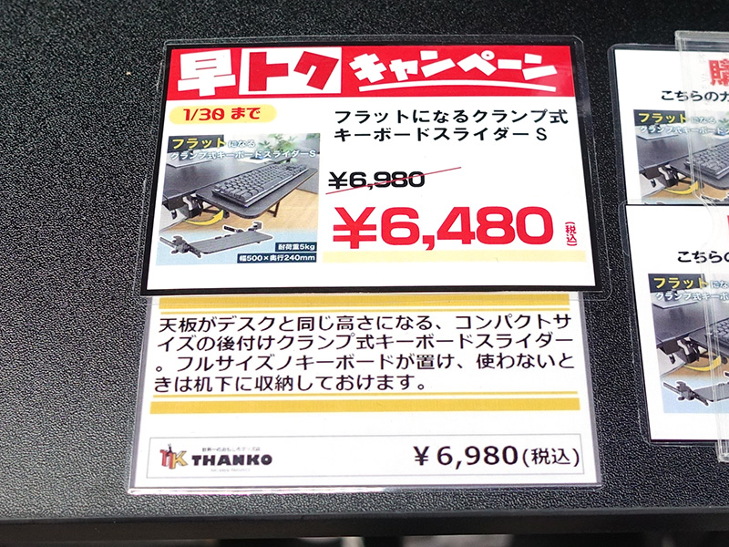 デスクに後付けできる「フラットになるクランプ式キーボードスライダーS」がサンコーから