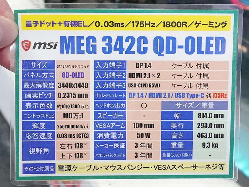残像感の無さに超鮮やかな発色、ウルトラワイドで没入感まで高めた有機ELゲーミングモニター「MSI MEG 342C QD-OLED」