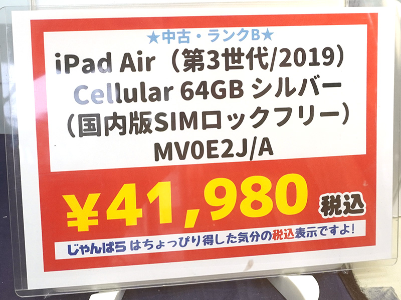 「第3世代iPad Air」のSIMフリー版が41,980円!じゃんぱらで中古品セール
