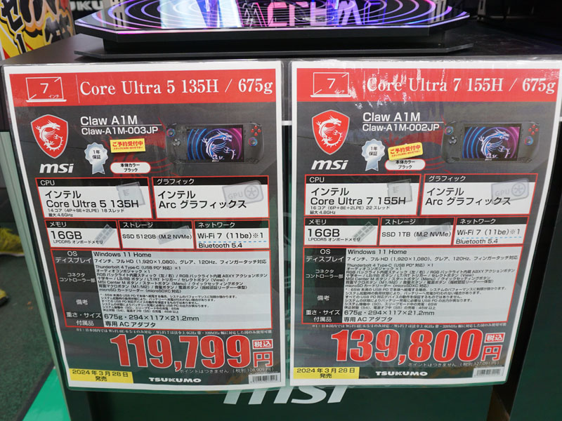 Core Ultra搭載、MSIの7インチゲーミングPC「Claw A1M」が28日発売(6/9)