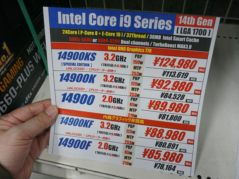 第14世代Coreの販売スタート、Core i9-14900Kは最大6GHzで動作