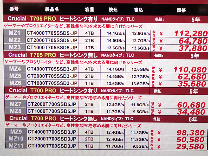 世界最速14.5GB/sのPCIe 5.0 SSD「Crucial T705」が登場、計6製品(6/7)