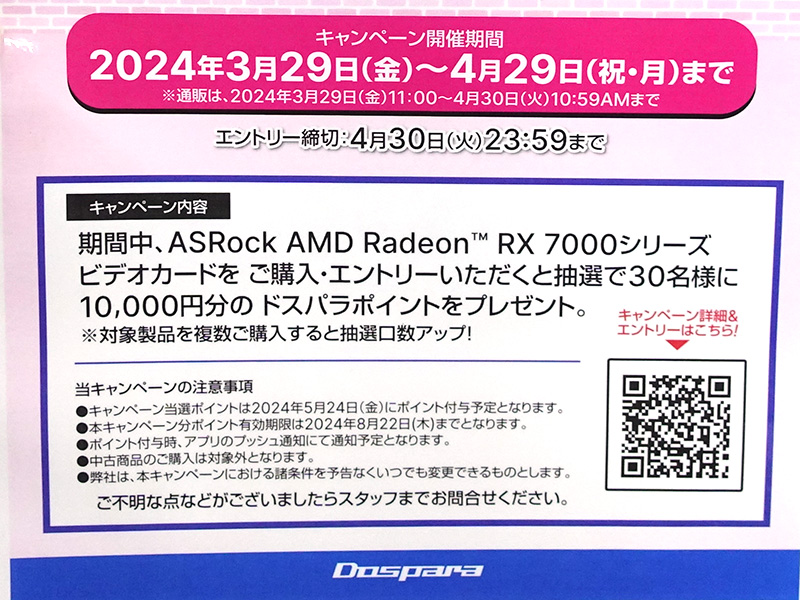 ASRock製Radeon RX 7000シリーズ購入で1万円相当ポイントが当たるキャンペーン、ドスパラで開催
