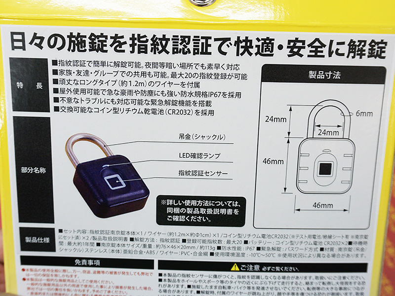 • 指紋で解錠できる南京錠があきばお~に入荷、価格は3,000円
