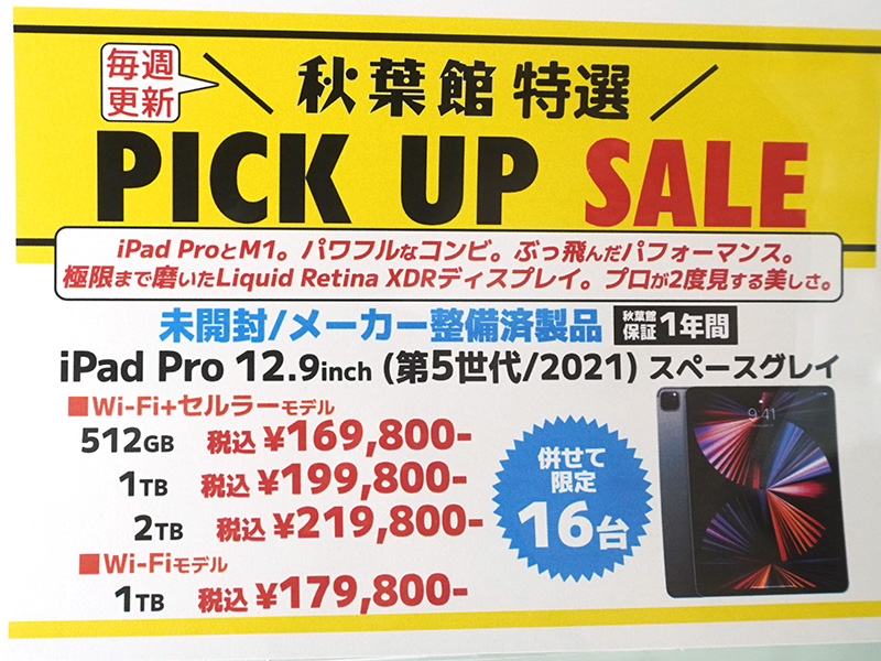 M1搭載「iPad Pro 12.9インチ」リファービッシュ品が169,800円から!秋葉館でセール