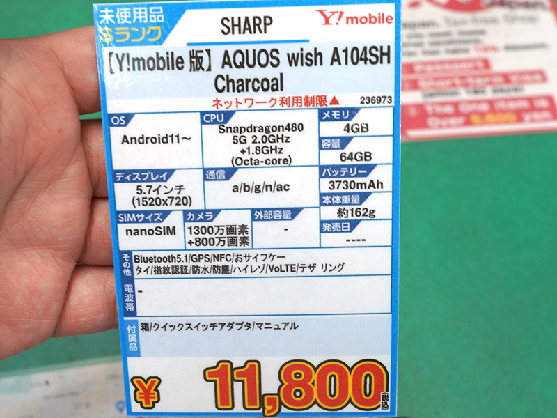 シャープの5Gスマホ「AQUOS wish A104SH」が11,800円!未使用品が大量入荷