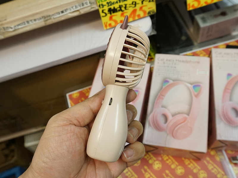 可愛らしい猫耳デザインのハンディ扇風機が800円、LED搭載