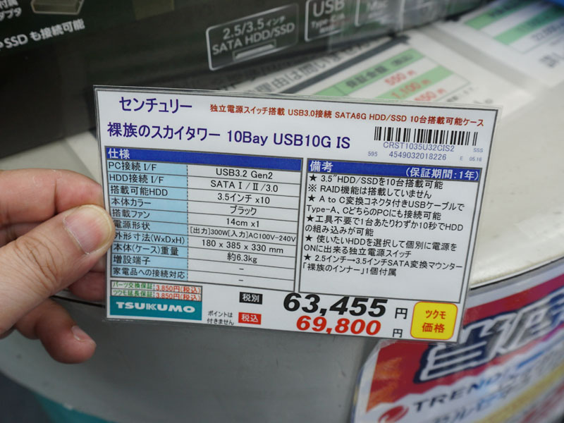 HDDが10台も搭載できる大型ケース「裸族のスカイタワー 10Bay USB10G IS」が入荷