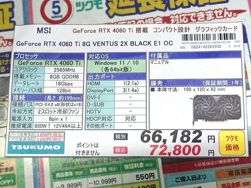 MSIのGeForce RTX 4060 Ti 8GBは4製品、一部店舗限定モデルもあり
