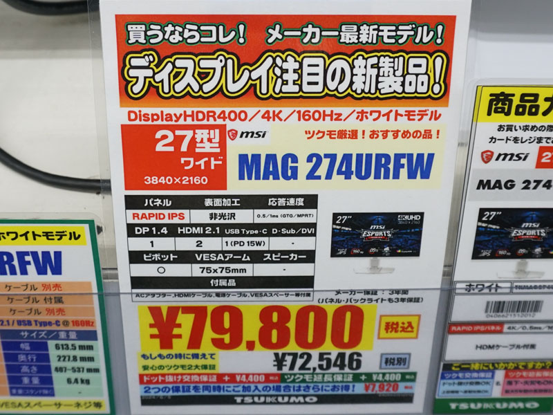 MSIの白い27インチ4Kゲーミングモニター「MAG 274URFW」が入荷