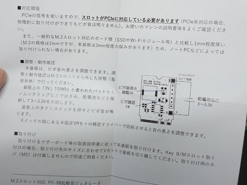 ノートPCの起動音を「ピポッ」に、Mini PCIeカード型の“PC-98起動音ジェネレータ”が登場