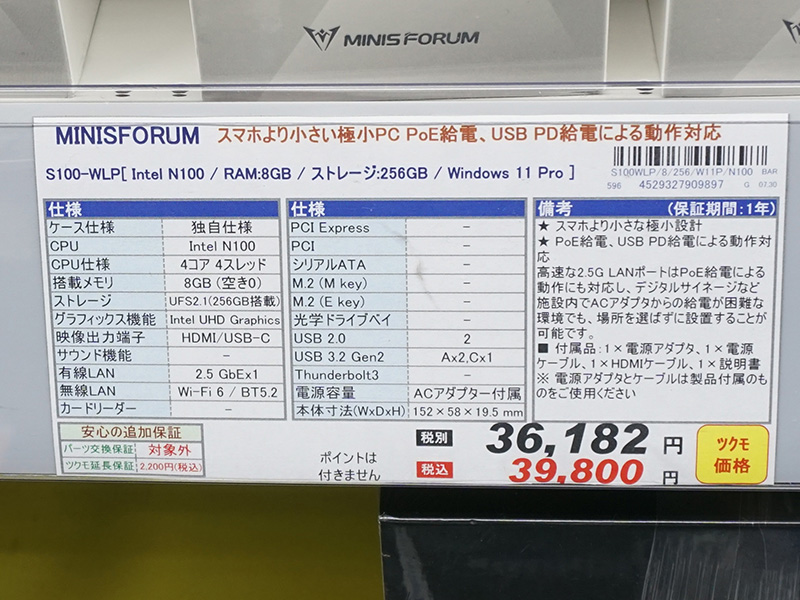 スマホよりコンパクトなPC「MINISFORUM S100-WLP」が発売、Intel N100搭載