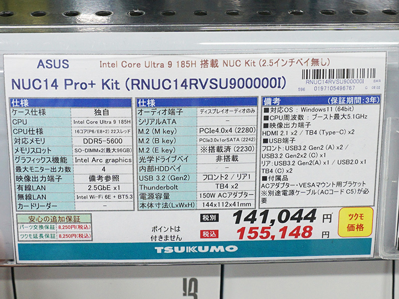 ASUSの小型ベアボーン「NUC 13」が店頭入荷、TDP 6WのN50搭載モデルなど2製品