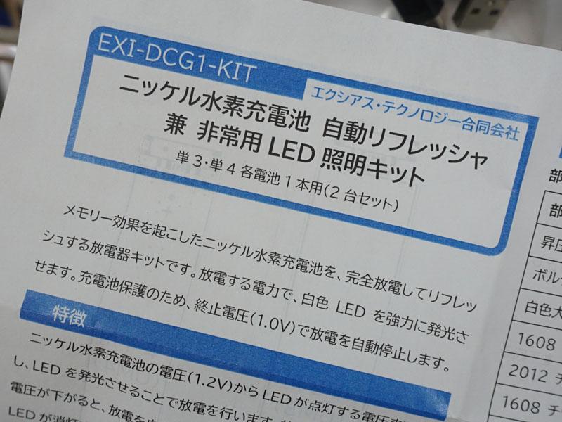 ニッケル水素充電池の放電器キットが登場、非常用LED照明機能あり