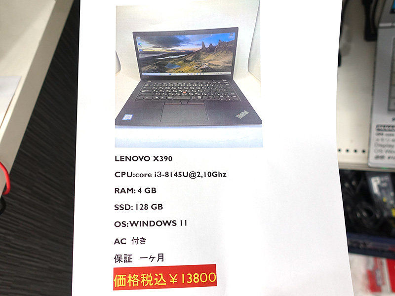 第8世代Core搭載の13.3インチ「ThinkPad X390」が13,800円!中古PCセール