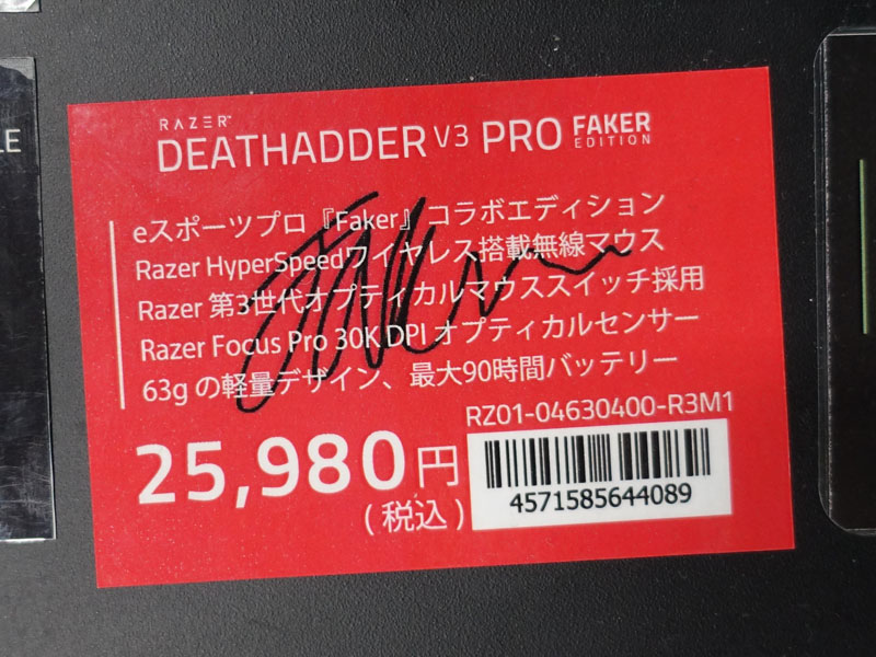 Razer製ゲーミングマウス「DeathAdder V3 Pro」のFakerコラボモデルが最終入荷(3/5)