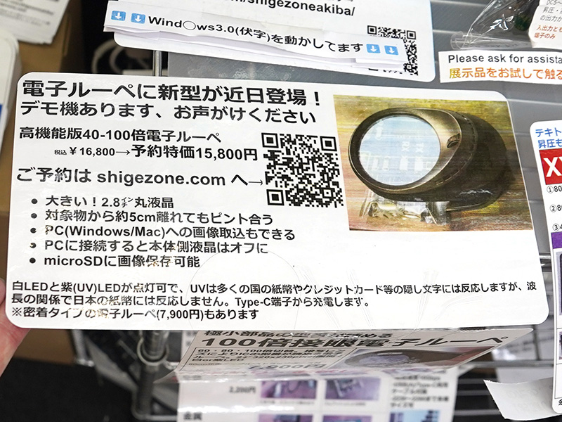 UVライト搭載で40~100倍表示可能な電子ルーペが近日入荷、画像保存にも対応