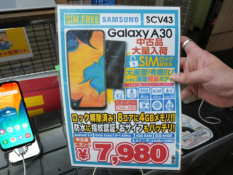 6.4型スマホ「Galaxy A30」が7,980円!中古Cランク品セール